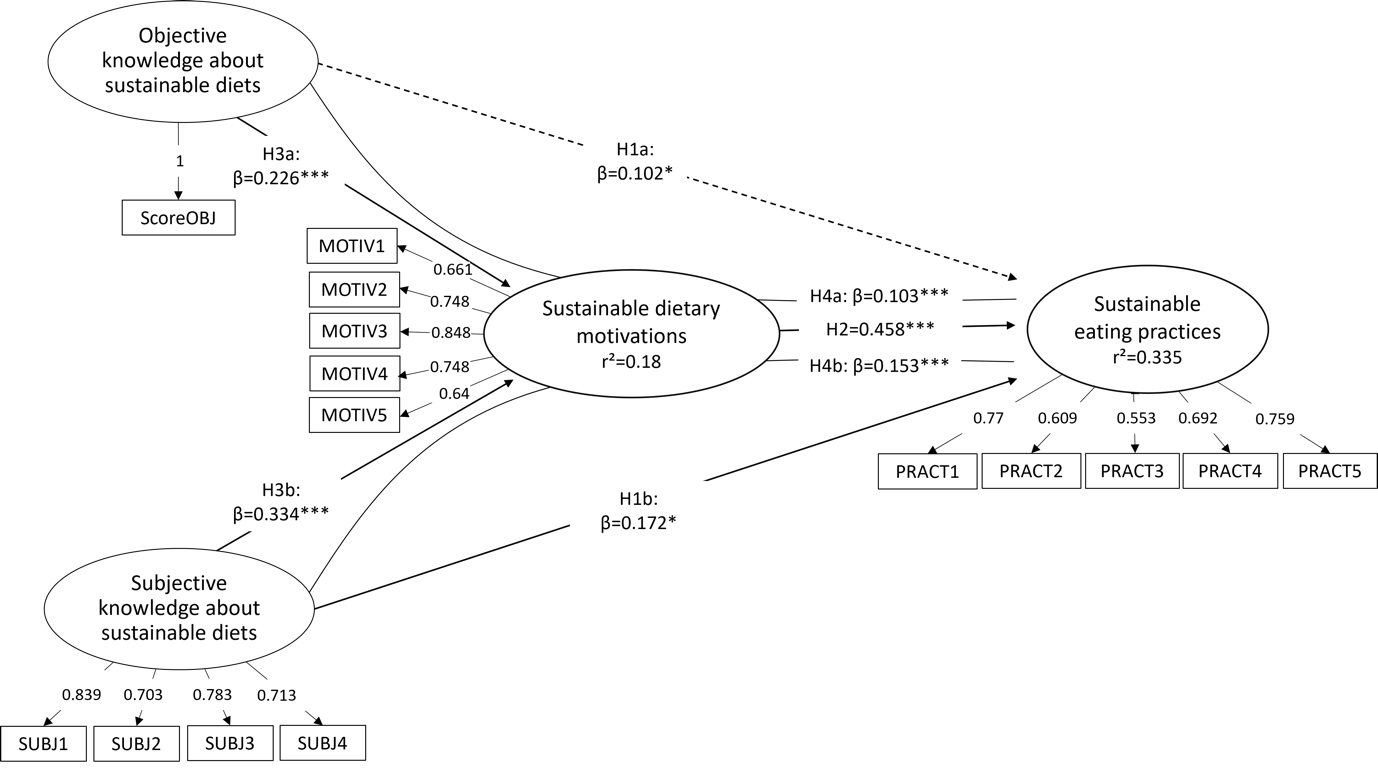 H3: Knowledge about sustainable diets, both objective (a) and subjective (b), has a positive effect on sustainable dietary motivations.