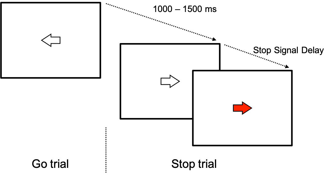 The Stop-Signal Task was used to probe reactive inhibition. We used the online version developed by F. Verbruggen https://github.com/fredvbrug/STOP-IT/tree/master/jsPsych_version.
