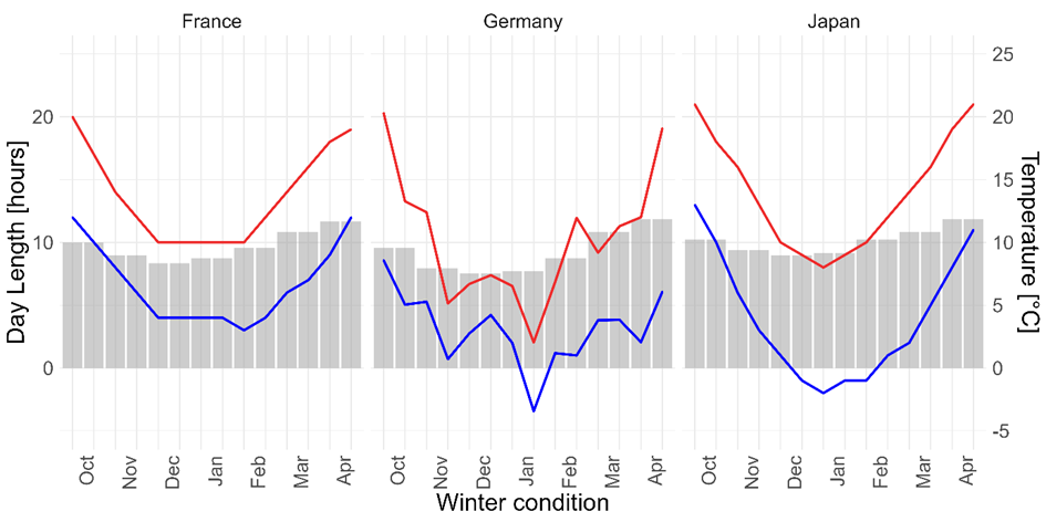 To test this hypothesis, we produced F1 offspring of two geographically distinct populations of A. bruennichi (both hybrid and pure-line offspring) and successively tested their performance under differing winter conditions (temperature) and summer conditions (temperature, day length, food availability).