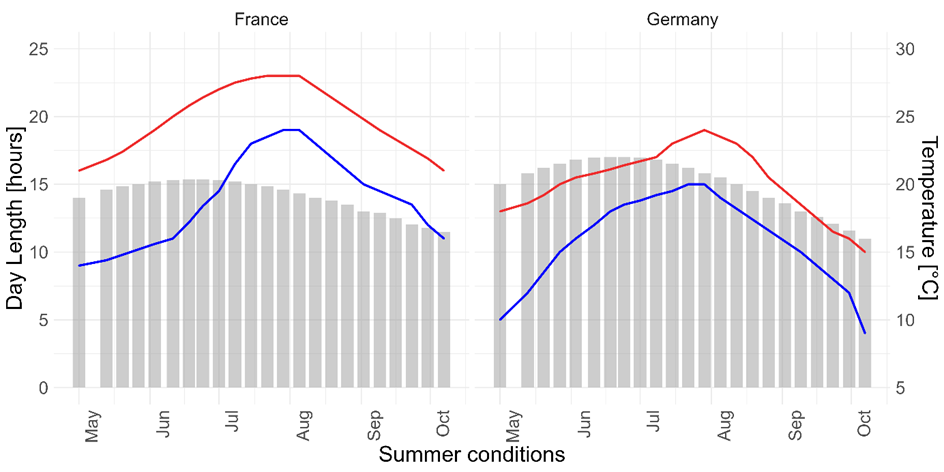 Due to the differences in summer day length and temperature between Southern and Northern European habitats, A. bruennichi has developed adaptive differences in timing their sexual maturation between the populations (Cory & Schneider, 2018b). While southern spiders are able to take advantage of a long warm period with abundant prey, northern spiders are more time restrained. This has led to northern spiders adapting a more synchronized maturation, with females reaching sexual maturity early in the mating season. Meanwhile, female A. bruennichi of Southern Europe mature less synchronized and freshly matured virgin females are available to males for longer, extending the mating season. Males of both populations benefit from early maturation, and are therefore protandrous and appear early in the season in all populations (Fromhage et al., 2003). While the speed of development in large parts appears to be genetically determined, it was shown that A. bruennichi also exhibits great plasticity as a response to environmental cues (Cory & Schneider, 2018a), leading to faster growth or maturation in habitats with shorter warm seasons. The heritability of plasticity in A. bruennichi has so far not been studied in detail, though a degree of heritability is likely.