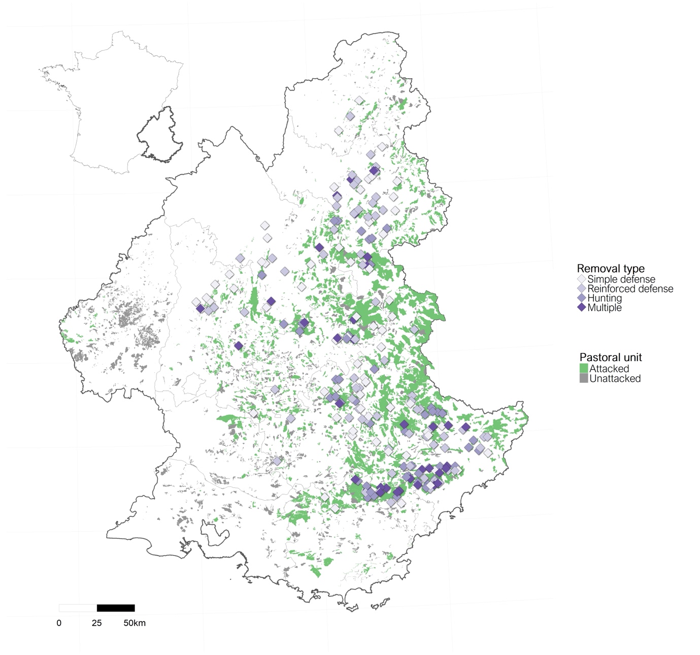 We are indebted to the public officials in charge of recording attack claims and lethal removals. We are grateful to the regional administration of Auvergne-Rhône-Alpes for the access to the databases of claims and of wolf lethal removals. We are also grateful to INRAE (previously IRSTEA) for the access to the pastoral census. We greatly thank Marion Valeix, John Linnell and Michel Meuret for their valuable comments regarding the first draft of this study as part of the PhD dissertation of Oksana Grente. We greatly thank Aaron Bott, Vincenzo Gervasi, Peter Sunde and an anonymous reviewer for their feedbacks, that greatly helped us to improve the manuscript. We also thank members of the scientific council of the National Plan of Action for wolves and livestock breeding activities for their feedback and advices. The analyses were performed on the Core Cluster of the Institut Français de Bioinformatique (IFB). Preprint version 5 of this article has been peer-reviewed and recommended by Peer Community In Ecology (https://doi.org/10.24072/pci.ecology.100752; Willebrand, 2025).