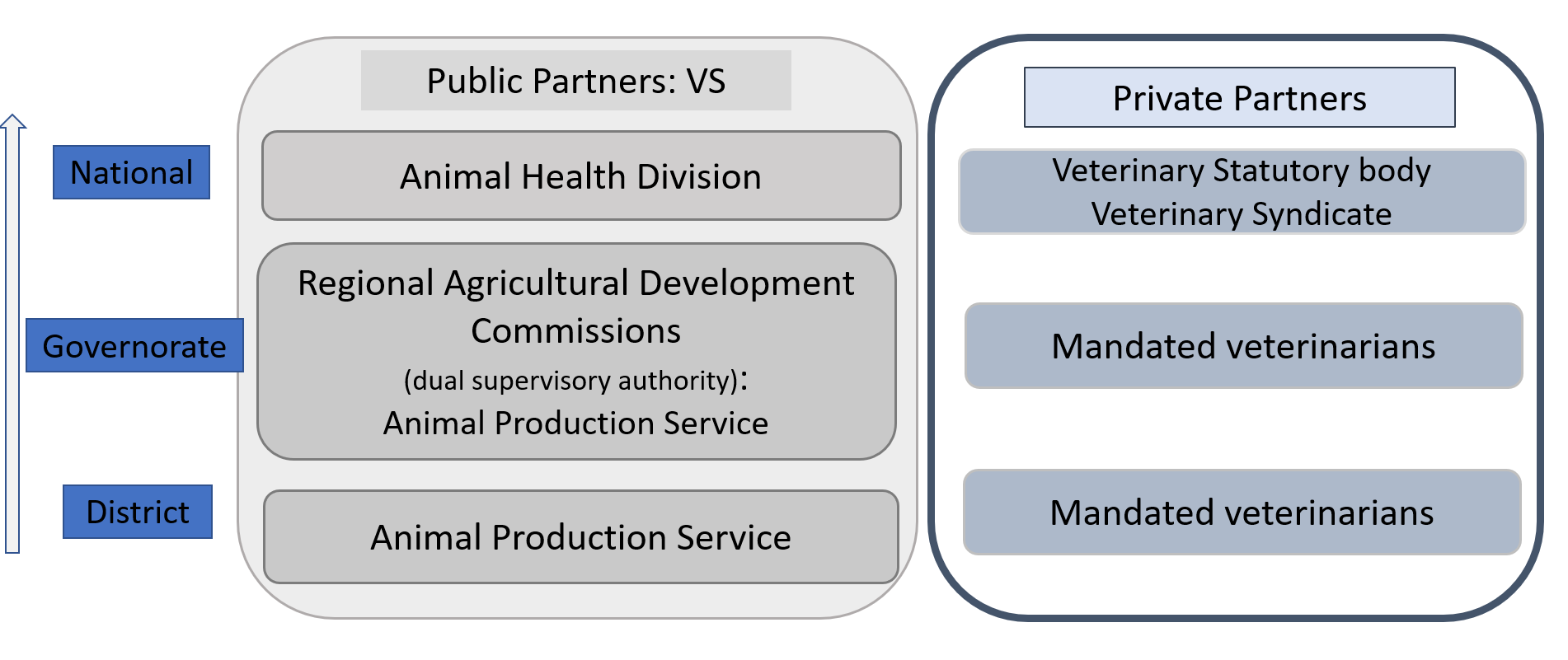 The optimisation of surveillance, prevention, and control systems for infectious and zoonotic diseases is a crucial feature in ensuring good animal health. Veterinary services are professional bodies dedicated to protecting animal health and welfare (WOAH, 2015). They ensure public health by controlling zoonotic diseases and food safety, support animal production, secure safe trade of animal products, protect wildlife, and enforce animal welfare laws. Different means can be developed to enhance the Veterinary Services, such as public-private partnerships (PPPs). The ongoing support by the World Organisation for Animal Health (WOAH) to various countries over the past 17 years through the Performance of Veterinary Services programme has highlighted the significant role and importance of the private sector in delivering quality veterinary services (WOAH, 2019).