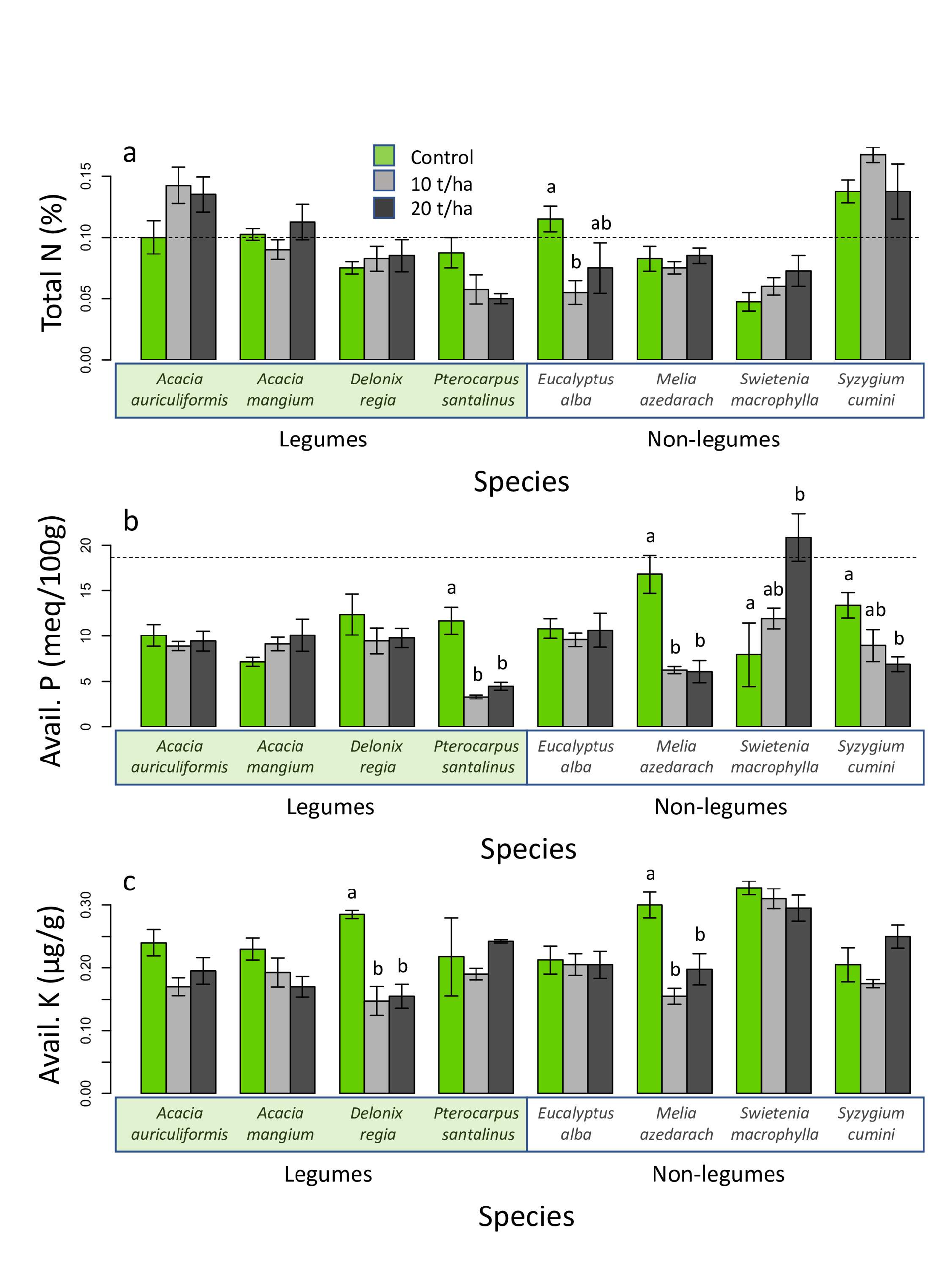 title = {Comparative responses of legume vs. non-legume tropical trees to biochar additions