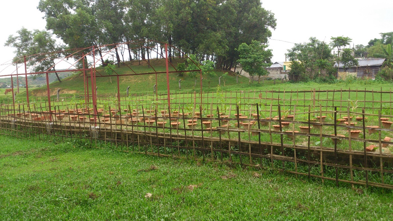 Seeds of the eight species were sourced from the Bangladesh Forest Department. A hot water treatment was applied to break seed dormancy, and germination occurred in cow-manure-enriched soil within plastic bags. After 45 days, seedlings with similar vigour were transplanted into 3-L pots with a 230 cm² surface area. Biochar-treated pots were filled sequentially with local soil and a 10 cm top layer of biochar-soil mixture (23 g for 10 t/ha and 46 g for 20 t/ha, on a dry mass basis). Incorporation in the upper soil was implemented to simulate surface applications likely in managed forests or restoration applications. No additional fertilization was provided. The biochar dosages used were chosen to be in a range near to somewhat below the optimum of 20-30 t/ha found in dose-response studies (Gale & Thomas, 2019). Biochar was air-dried before mixing with the topsoil layer in each pot. The control group received no biochar, whereas the treatment groups received corresponding biochar quantities. Although it was the monsoon season, during periods of low rainfall an equal amount of deionized/autoclaved water was added to approximate field capacity, a total of two times, to each pot.