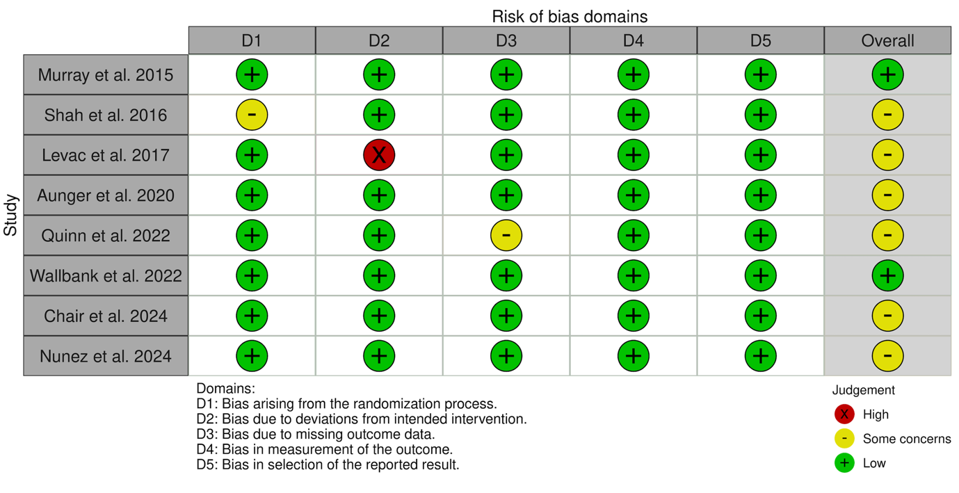 Figure 2 - Reporting on Risk of Bias (ROB) of the RCTs assessed by the ROB2 tool (Sterne et al., 2019).