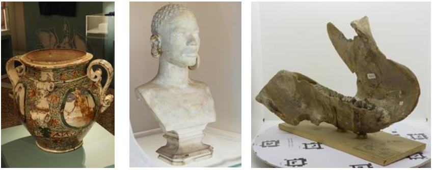 Figure 3 - The three case studies described in this paper: a) the Teriaca Vase, b) the Dschagga woman bust; c) the Glyptodon Jaw