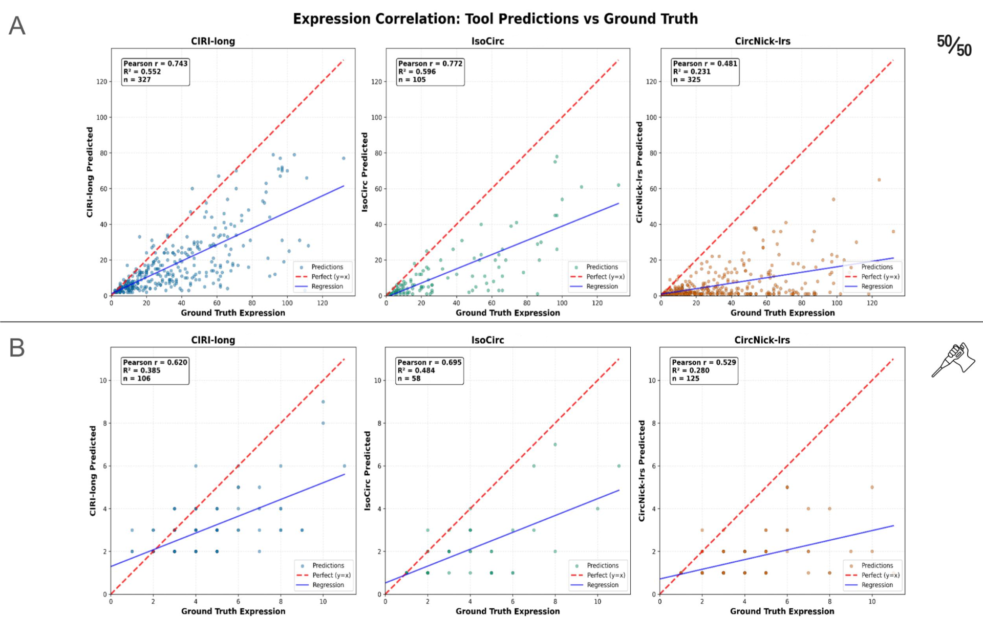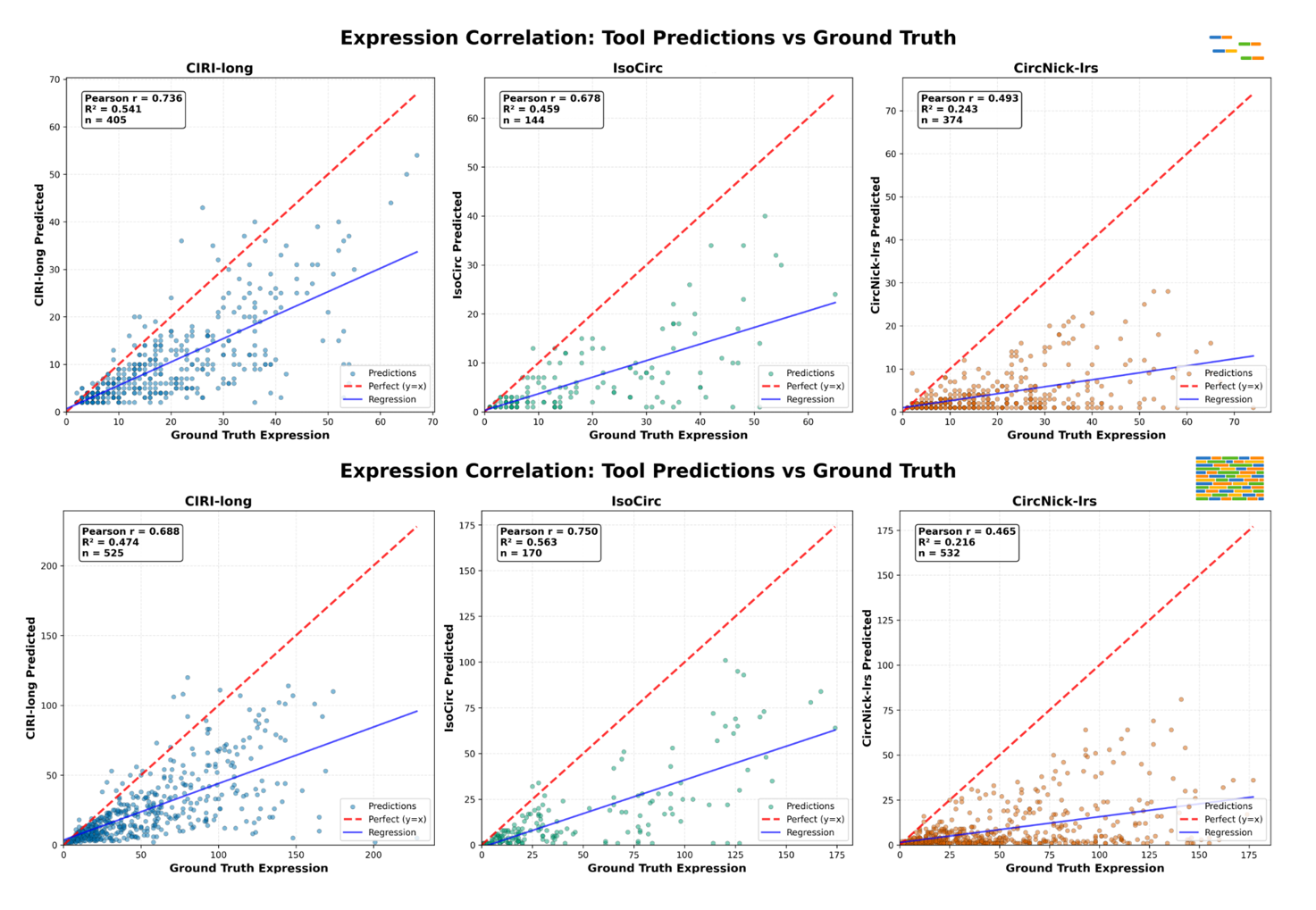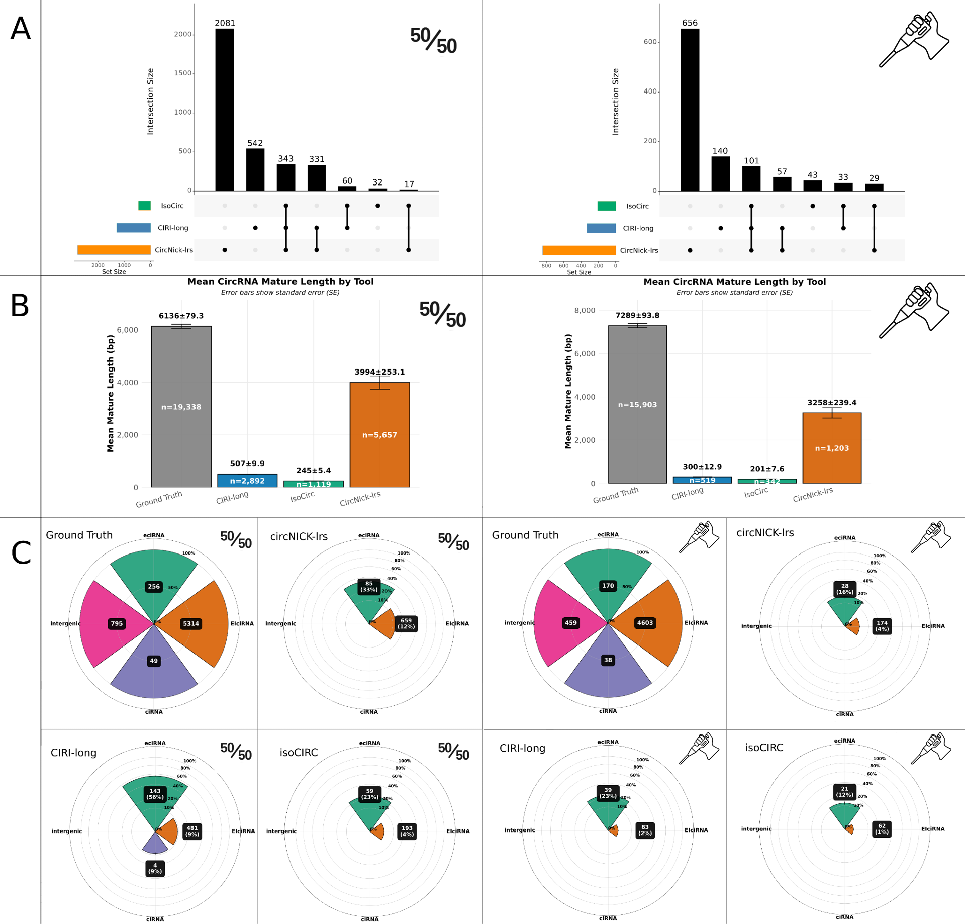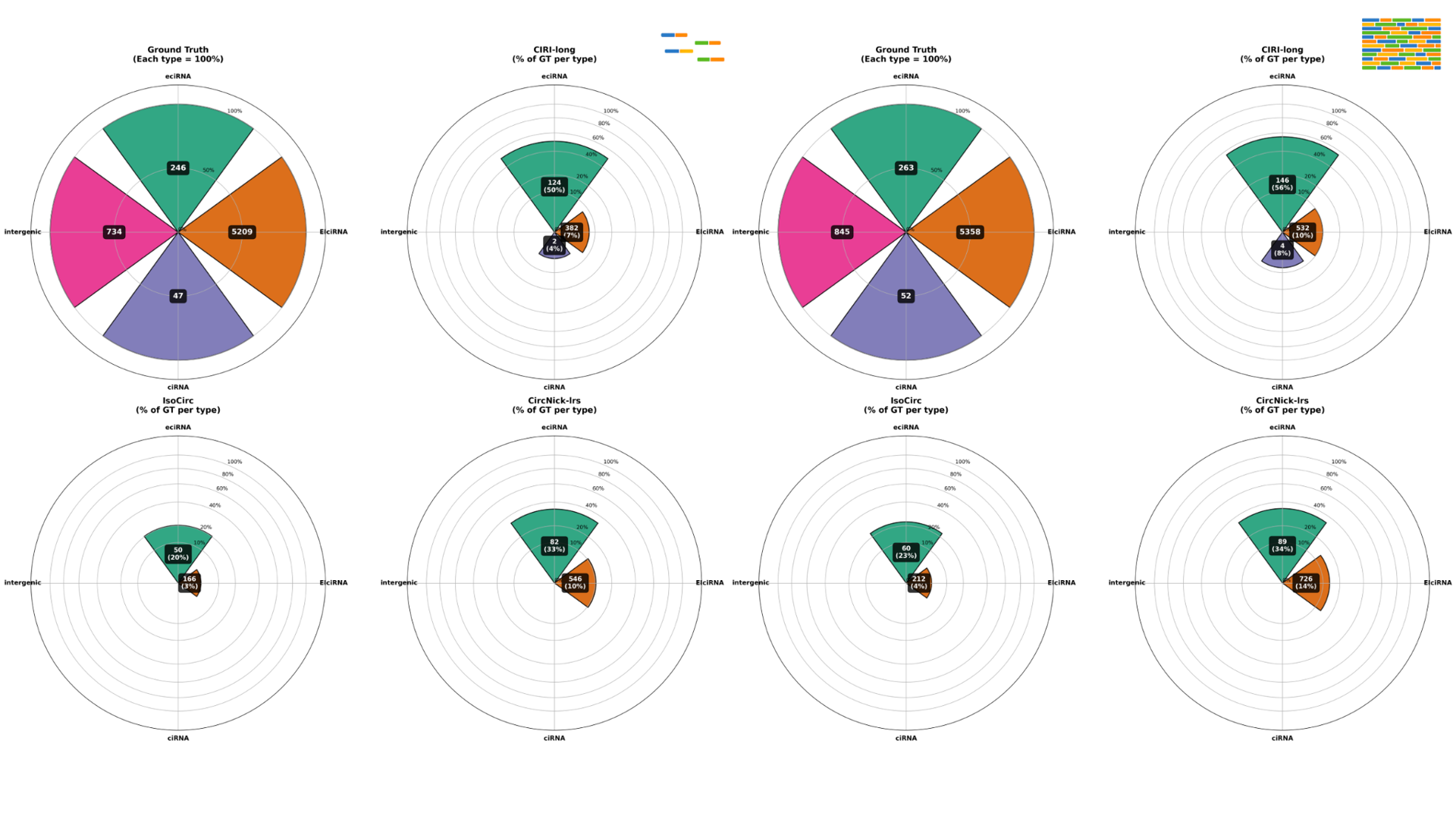 Mouse brain dataset: We selected the CIRI-long protocol and mouse brain dataset from CIRI-long study as our basis to establish a robust foundation for our benchmarking study. The CIRI-long paper has the highest number of citations and provides the most comprehensively described wet-lab conditions, making it an ideal reference point for comparative analysis. Additionally, mouse circRNA databases contain over one million well-curated annotations, providing robust ground truth data essential for reliable feature extraction and validation of detection accuracy across all three methods.