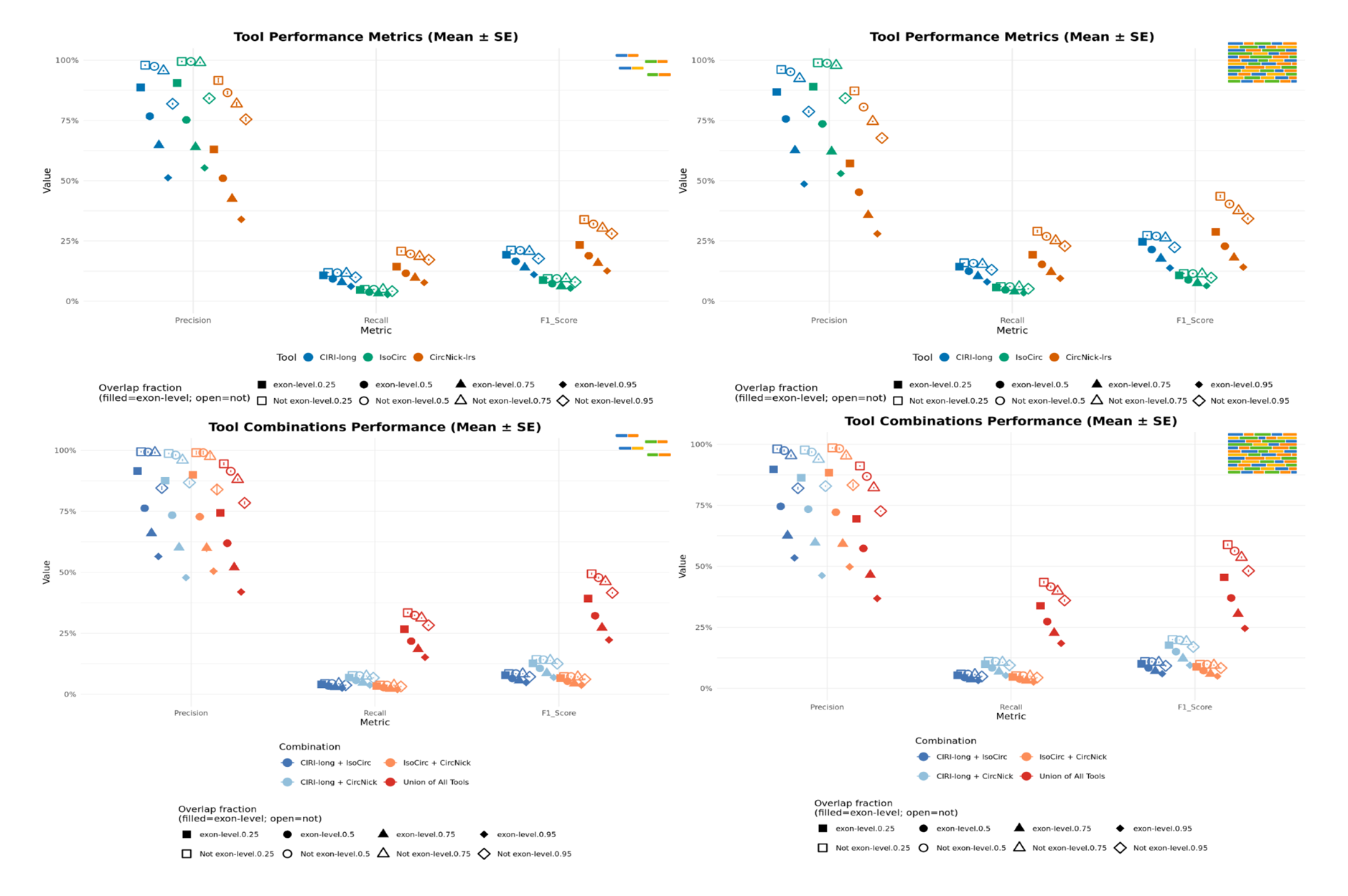 Despite the growing number of bioinformatics tools developed for circRNA detection (Drula et al., 2024), a comprehensive benchmark comparing their performance on long-read Nanopore sequencing data remains absent. To address this gap, we performed a systematic comparison of 3 circRNA detection tools - CIRI-long (Zhang et al., 2021), IsoCIRC (Xin et al., 2021) and circNICK-lrs (Rahimi et al., 2021).