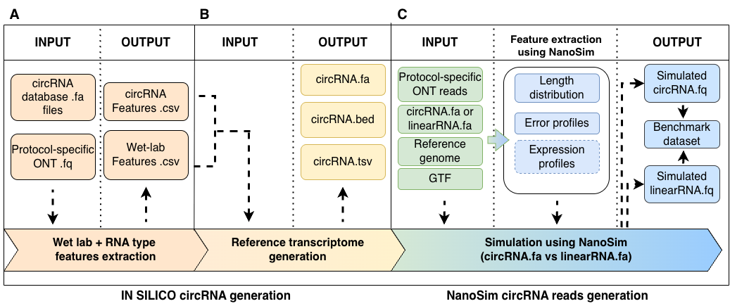 The complexity of circRNA detection requires a reproducible evaluation framework that goes beyond traditional wet-lab datasets. Such datasets, experimentally generated from biological samples using standard circRNA enrichment and sequencing protocols, inherently lack an established ground truth and suffer from limitations such as biological variability and sequencing biases. Simulated datasets offer a solution to these challenges, providing a controlled environment with precisely known circRNA and linear RNA annotations. By generating in silico reads that mimic the molecular and sequencing characteristics of Nanopore technologies, we can create a comprehensive ground truth dataset that allows for rigorous assessment of performance by each of circRNA detection tools.