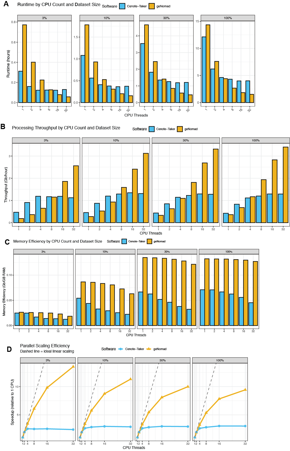 Annotation benchmarks were performed using a 2023 MacBook Pro laptop computer with 16 GB of memory and an Apple M2 Pro chip running MacOS. Resource scaling benchmarks were performed on compute nodes with Intel “Emerald Rapids” with 32 central processing units and large onboard cache with 1 TB memory each.